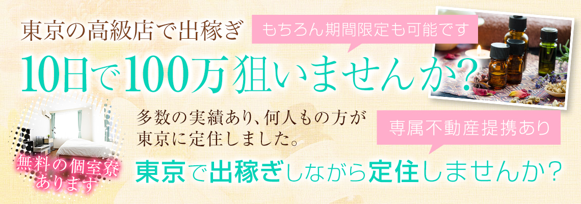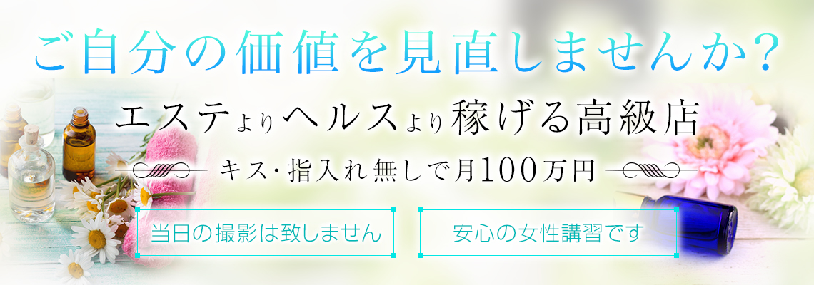 | 応募資格 | 18歳(高校生不可)〜30代後半位までの健康な女性 風俗未経験の方、大歓迎です。 エステ、マッサージ関係の資格をお持ちの方、優遇致します。 |
